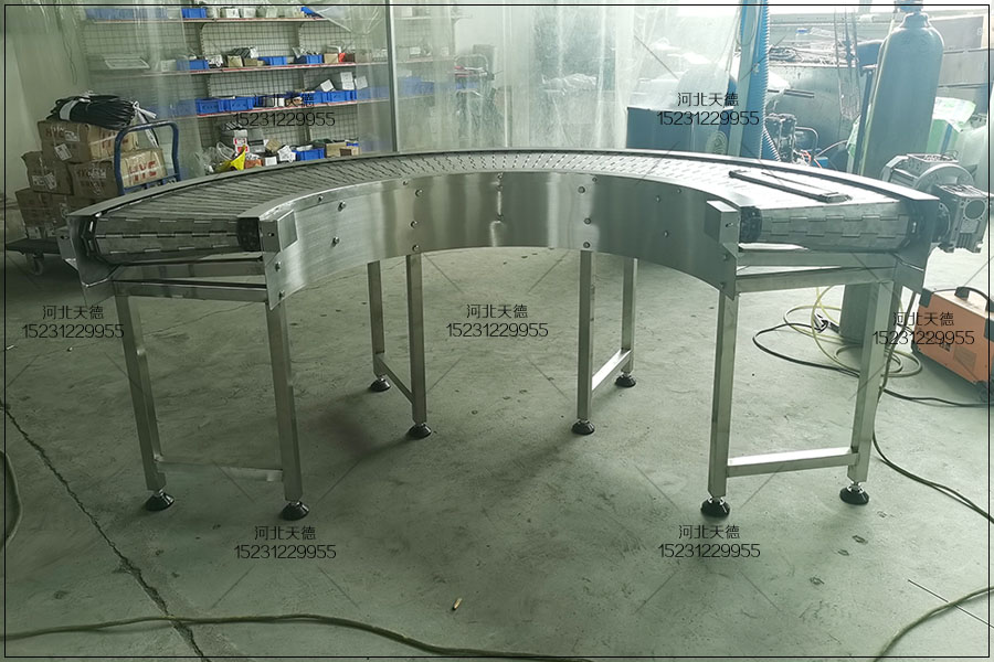 5.平頂鏈轉(zhuǎn)彎機:采用平頂鏈作為載體,輸送范圍窄,可以輸送軌道隨意性好。