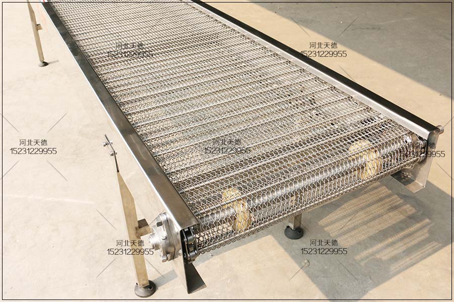 我們?cè)谇逑春娓缮]氐臅r(shí)候要選擇清洗設(shè)備與烘干設(shè)備來進(jìn)行流水線工作,這樣大大的提高了工作的效率,那么在清洗烘干桑葚的時(shí)候我們選擇哪種結(jié)構(gòu)形式的輸送機(jī)比較合適呢?河北天德絲網(wǎng)建議大家采用網(wǎng)帶輸送機(jī),這種結(jié)構(gòu)形式的輸送機(jī)采用鏈條輸送網(wǎng)帶來清洗烘干輸送帶,鏈條輸送帶根據(jù)輸送產(chǎn)品的需要選擇合適的直徑的鋼絲,然后編織成需要的孔徑,像桑葚這么大小的水果我們采用1.2毫米的絲徑,將孔編織成15*20毫米就可以,無論是清洗的時(shí)候還是烘干的時(shí)候都可以采用這種孔的。另外還要選擇合適的輸送鏈條的節(jié)距與桿的直徑,一般鏈條節(jié)距選擇31.75毫米與38.1毫米的比較多,這種鏈條節(jié)距的鏈條都可以采用桿直徑6毫米和8毫米的輸送鏈桿,桿與桿之間的距離一般在120-150毫米左右。在清洗行業(yè)與烘干行業(yè)中我們要選擇不銹鋼304材質(zhì)的金屬網(wǎng)帶。