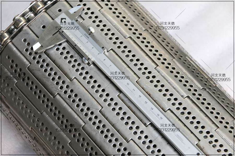 鏈板的厚度為1.5毫米,其實鏈板的厚度1.2毫米就足夠用了,客戶為了增加鏈板的耐磨度增加使用的時間采用了厚一些的鏈板。