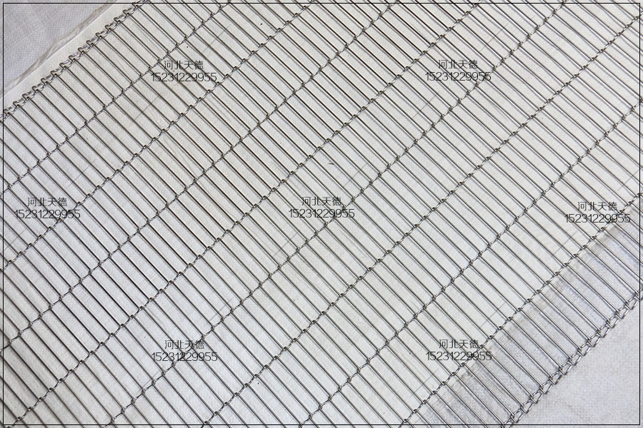 乙字輸送帶多用于食品的輸送,常見輸送巧克力、薄脆餅干、蛋糕加工線、油炸機(jī)設(shè)備、烘干設(shè)備等等,但是乙型輸送帶也可以用在裝飾行業(yè)中使用,可以用在室內(nèi)的裝修,酒店裝飾,書店裝飾等等。下面天德介紹一款可以做金屬網(wǎng)帶使用也可以做裝飾網(wǎng)使用的乙字網(wǎng)。