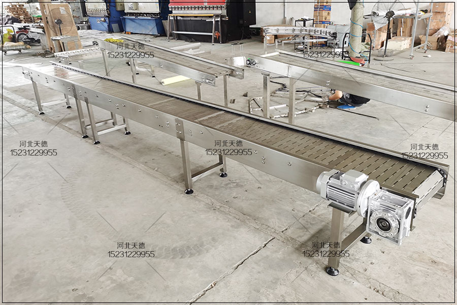 鏈板輸送機歡迎來電定制河北天德雞胸肉油炸流水線鏈板輸送機:15231229955 網址:http://www.xc1860.net/