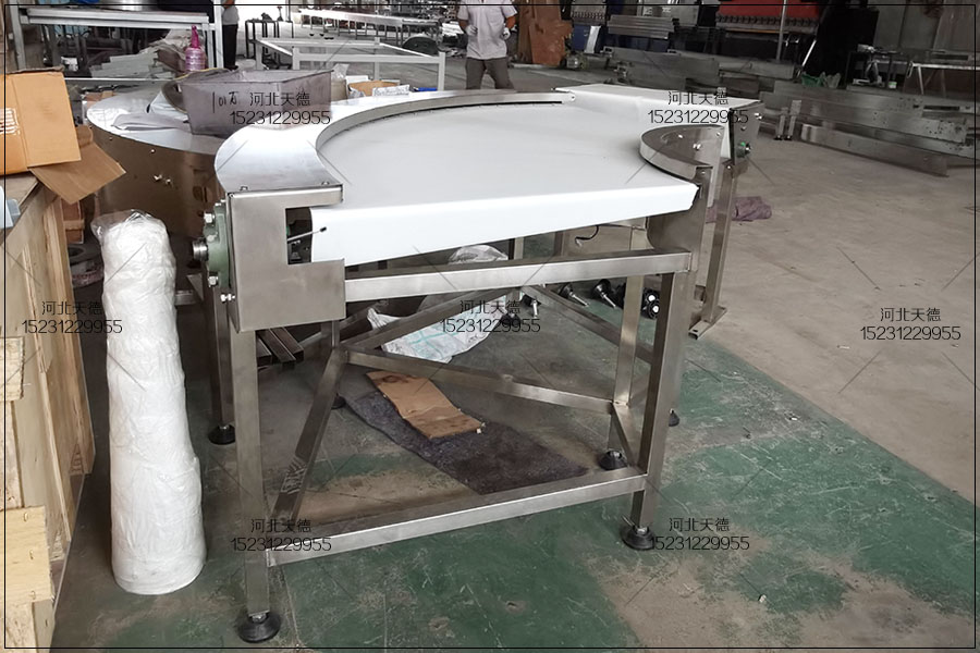 6、轉(zhuǎn)彎輸送的角度(如90度轉(zhuǎn)彎,45度角轉(zhuǎn)彎,180度轉(zhuǎn)彎)。 為了保證貨物能夠平穩(wěn)輸送,在任何時(shí)間點(diǎn)都至少有三只輥筒與輸送物保持接觸。對(duì)軟袋包裝物要加托盤輸送。