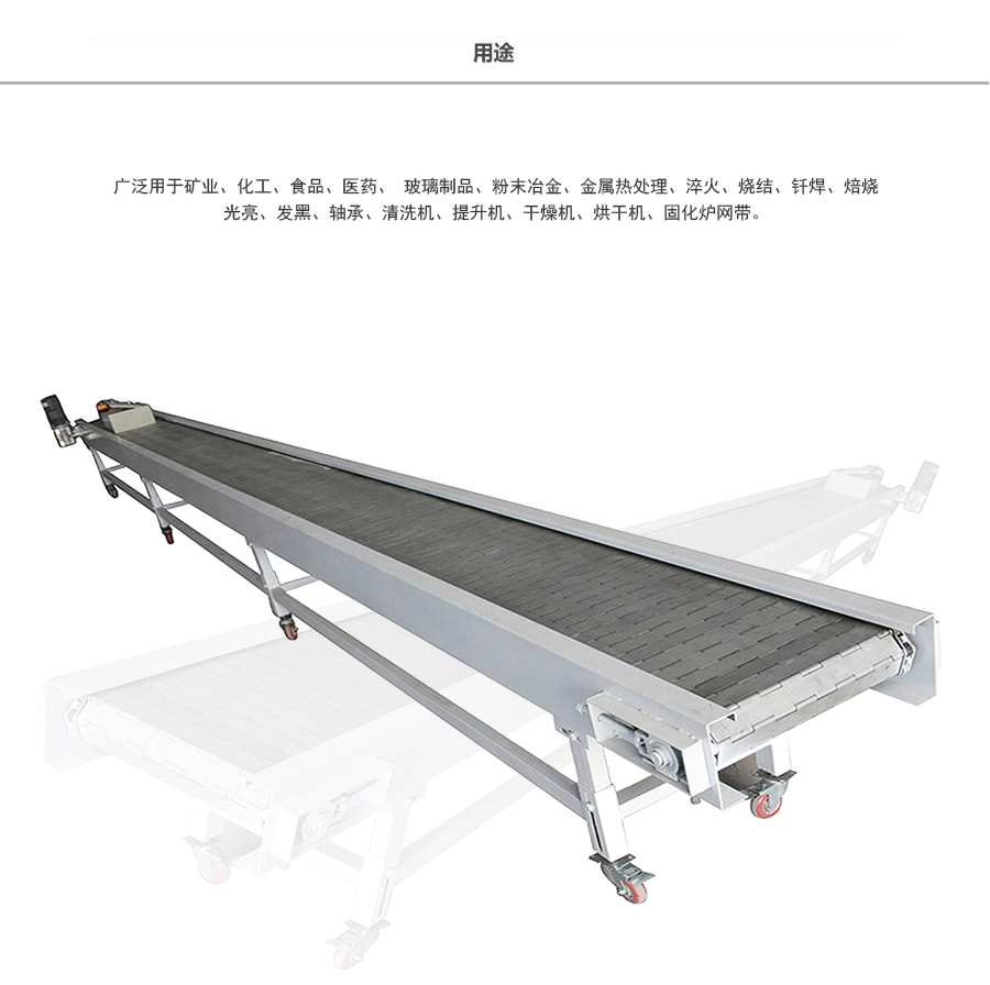 鏈板輸送帶應用:鏈板式網(wǎng)帶廣泛用于玻璃制品行業(yè)的退火爐鏈板、烤花爐鏈板等。食品加工行業(yè)、脫水蔬菜、速凍食品單凍機前處理鏈板、鏈網(wǎng)。粉末冶金、金屬熱處理、淬火、燒結、釬焊、焙燒、光亮、發(fā)黑、軸承、滲碳高溫爐鏈板、擋板式鏈板、涂裝烘干線輸送鏈板、泡沫鎳還原生產(chǎn)線鏈板,清洗機、提升機、干燥機、烘干機、固化爐鏈板。各輸送工藝鏈網(wǎng)、鏈板、速凍、烘烤機械的平面輸送、螺旋輸送、食品機械的清洗,殺 菌、烘干、冷 卻、蒸煮等玻璃機械的退火、烤花、輸瓶等。