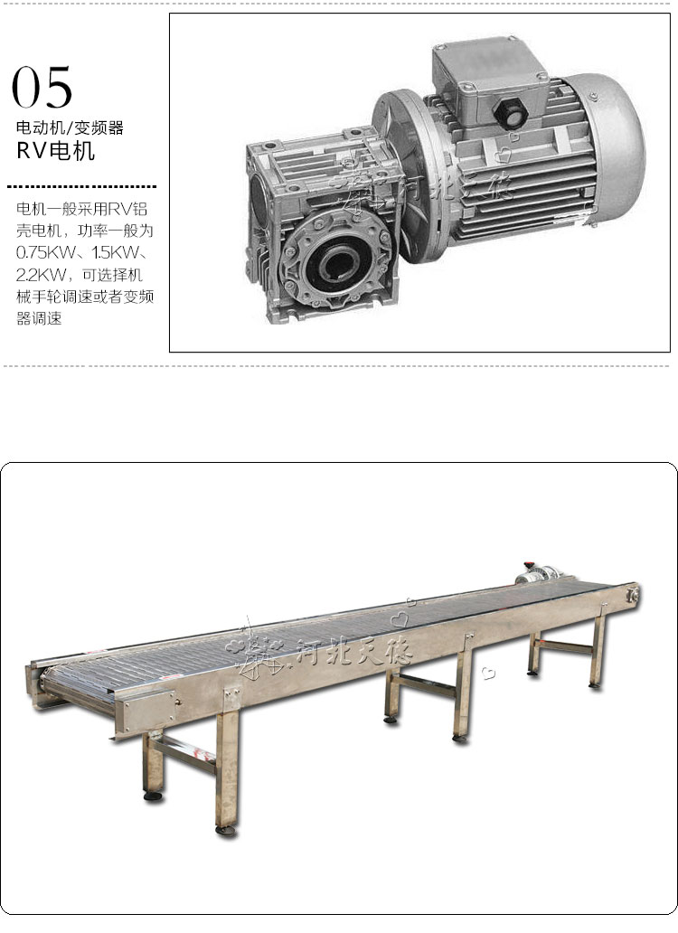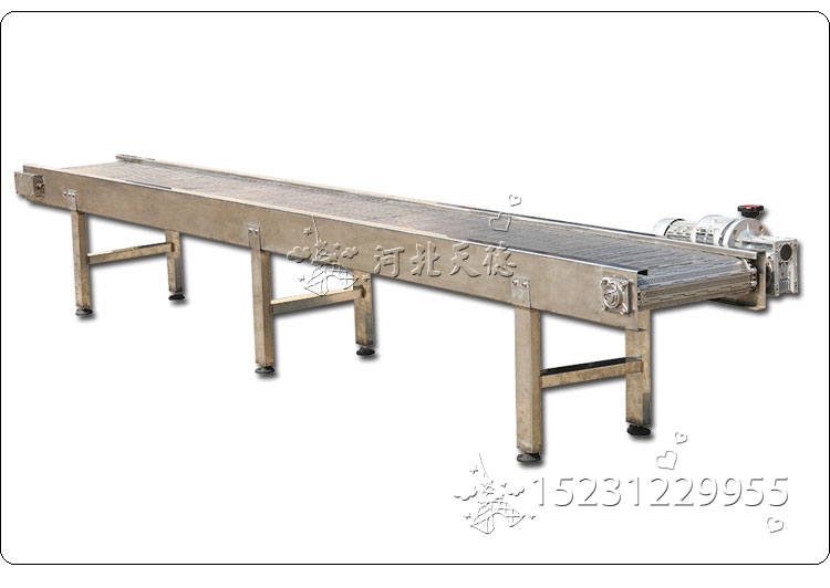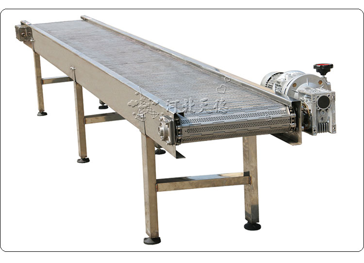 不銹鋼鏈板輸送機:采用金屬鏈板網帶作為輸送載體。驅動方式:減速電機驅動。